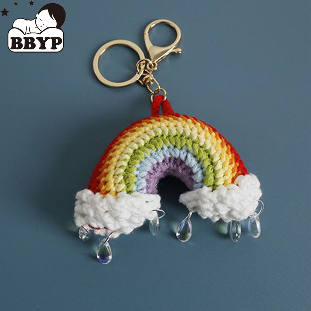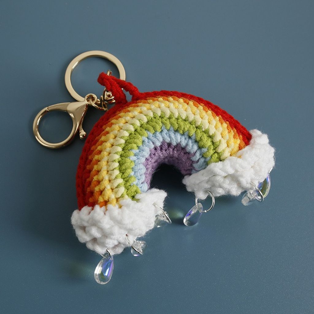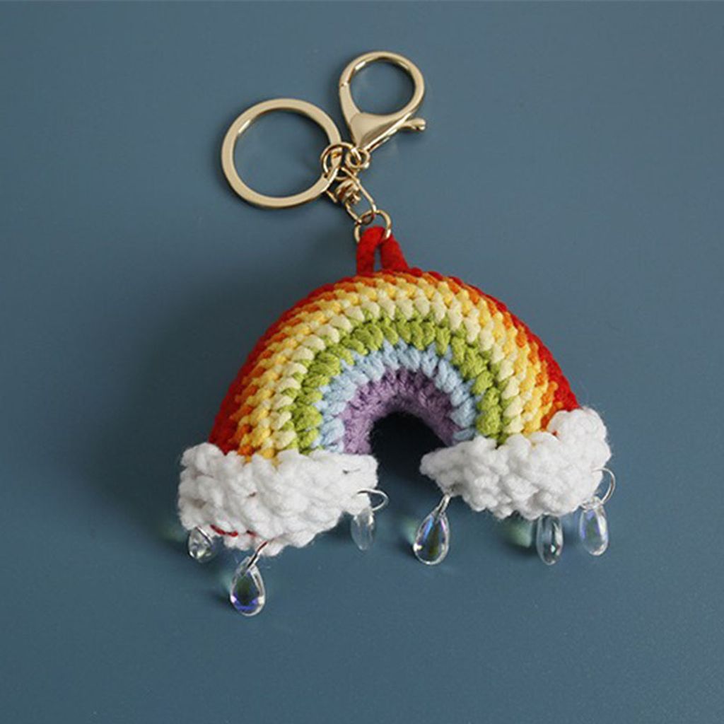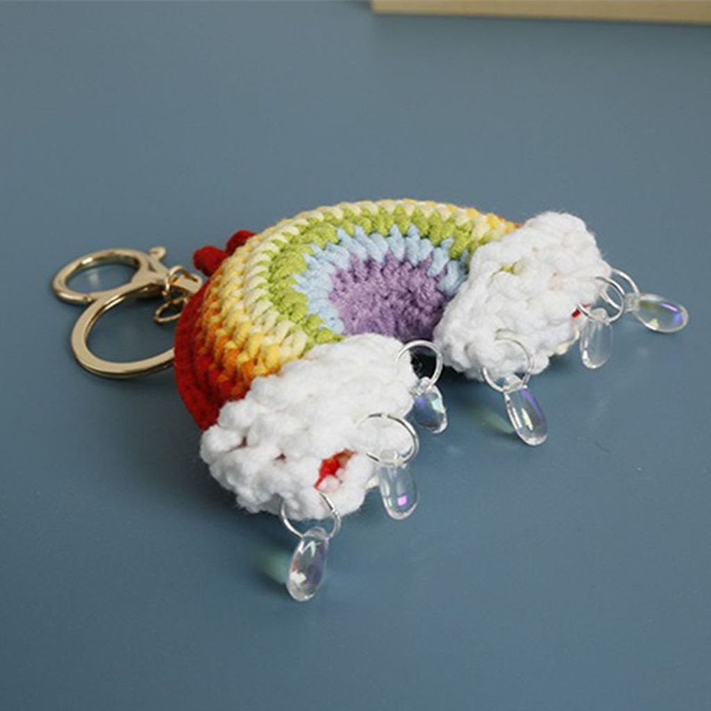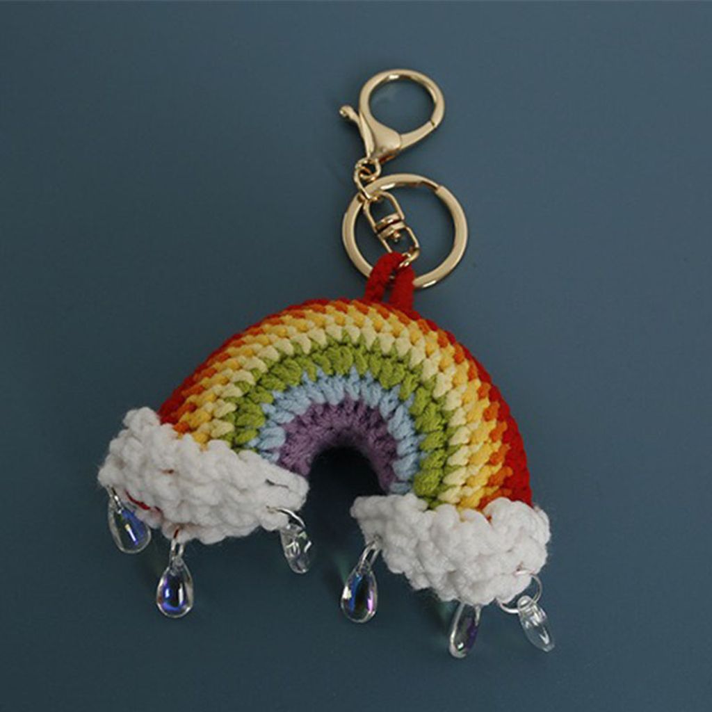 Handmade crochet rainbow raindrop keychain perfect gift handmade stick needle keychain pendant school bag keychain