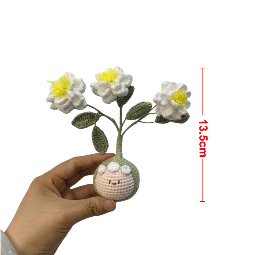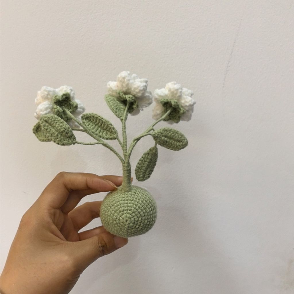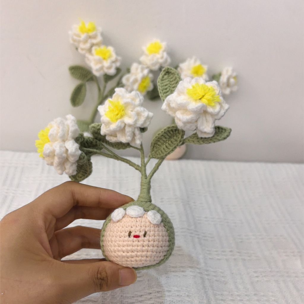 Crochet Artificial Plants Fake Flower Potted Hand Woven Gardenia Bonsai Handmade Woven Simulated Flower Kid Home Decorations