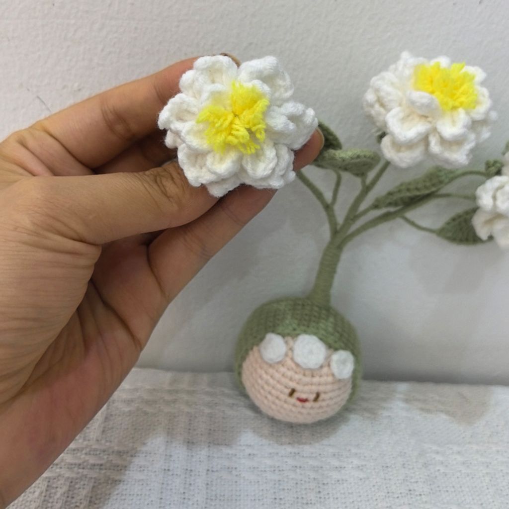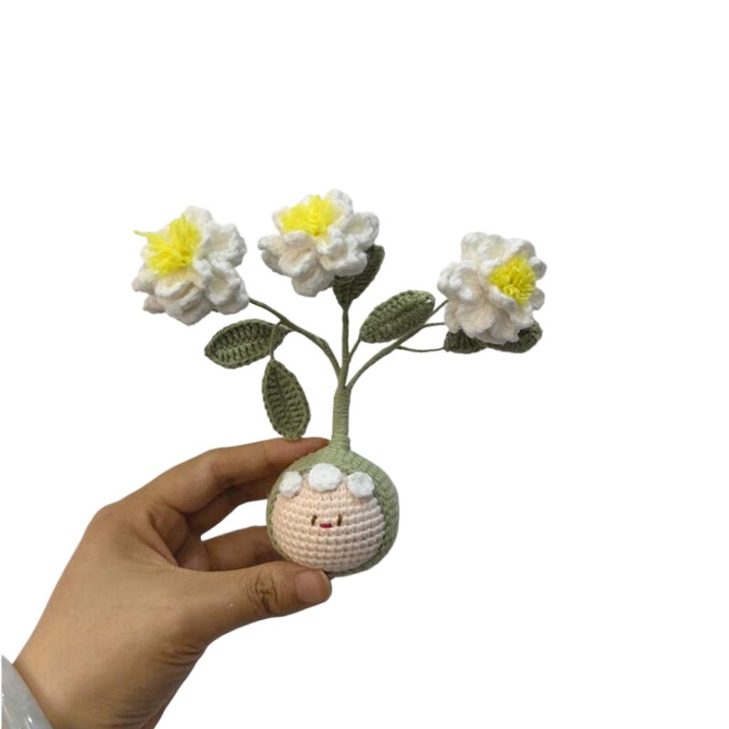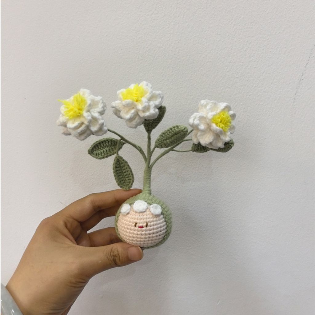 Crochet Artificial Plants Fake Flower Potted Hand Woven Gardenia Bonsai Handmade Woven Simulated Flower Kid Home Decorations