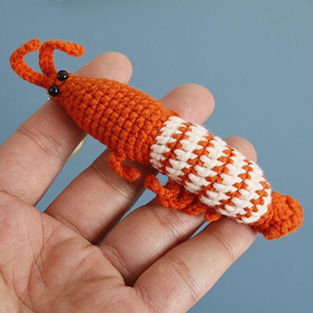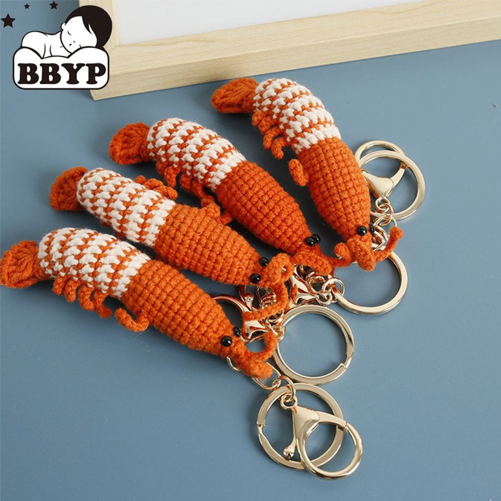 Cute Shrimp Charm Keychains Cartoon Mini Hand Knitted Car Keyring Lovely Backpack Handbag Pendant Couple Keyholder