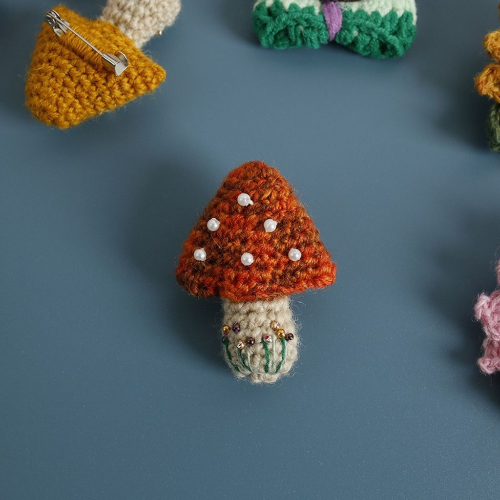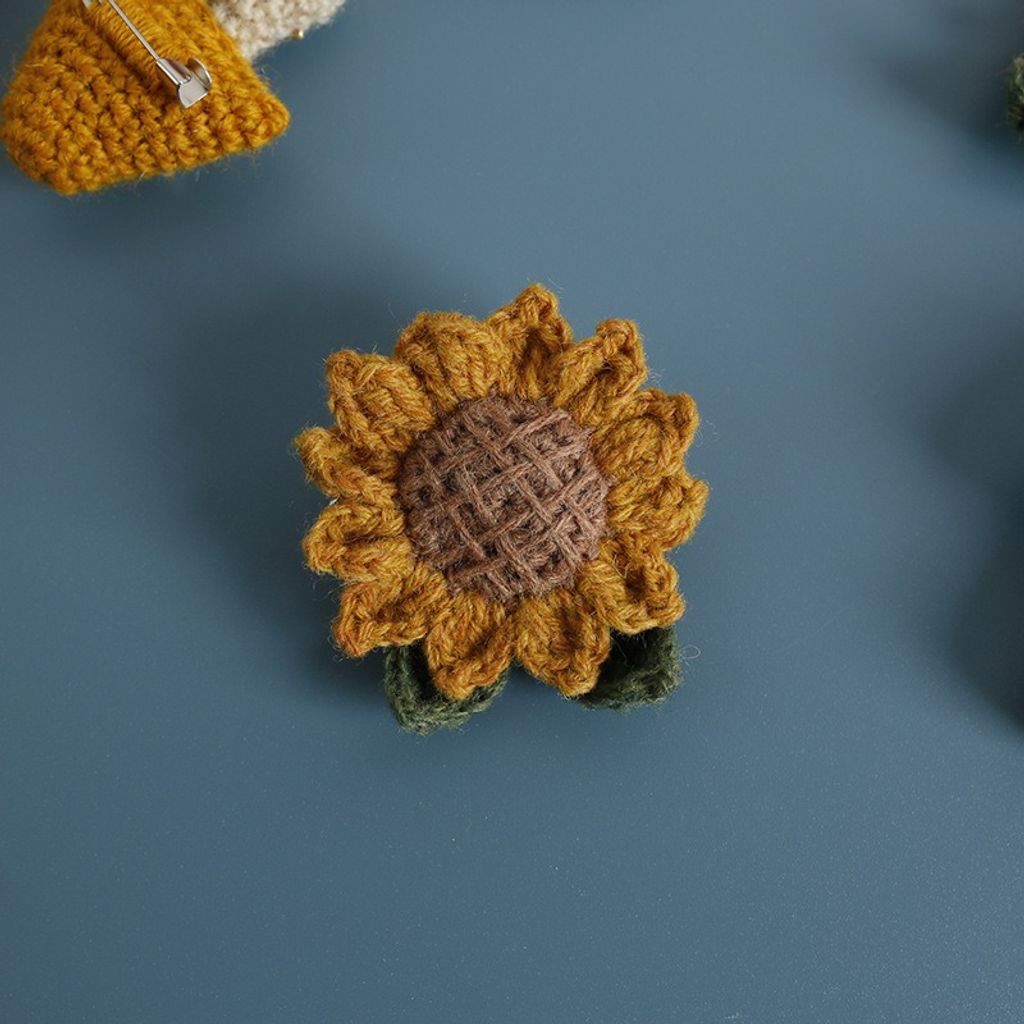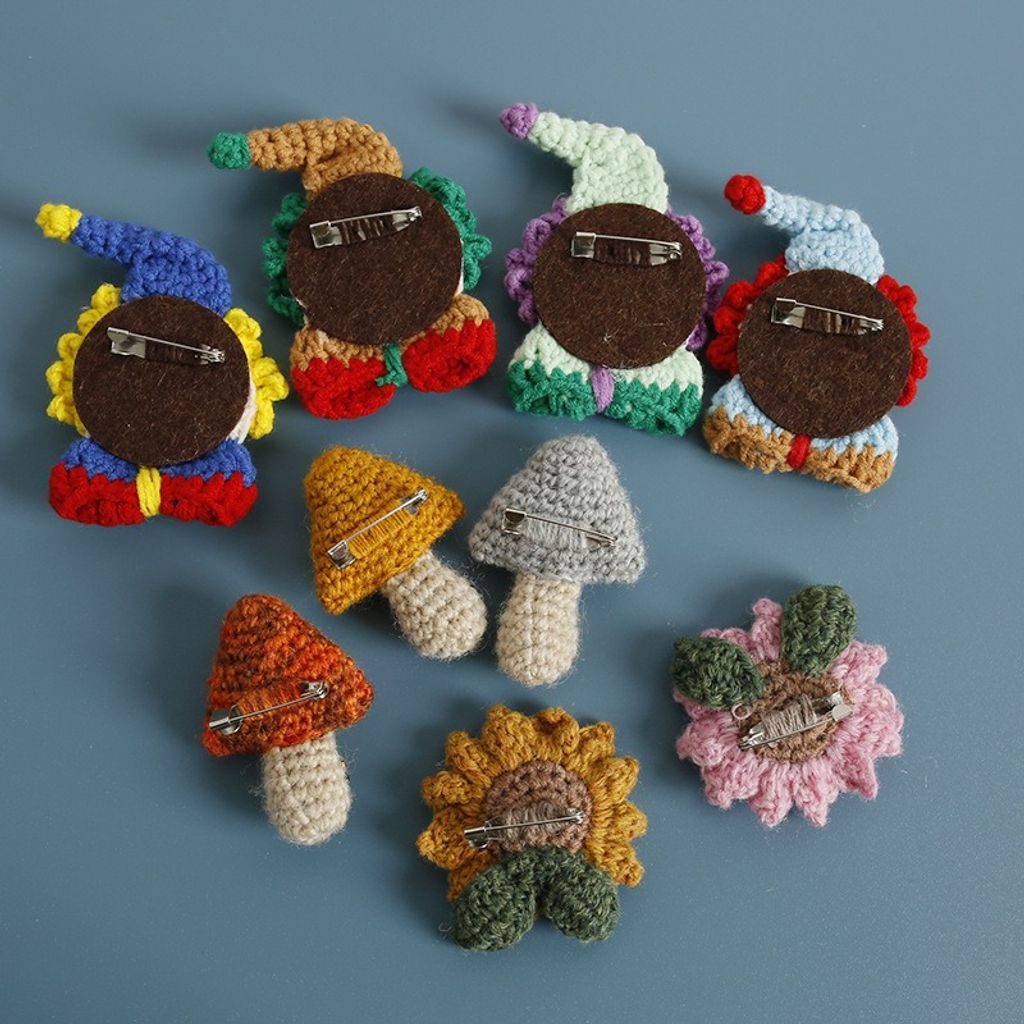 Handmade Brooch Crochet Mushroom Sunflower Leaf Hand-knitted Cotton Wool Breastpin Clothes Cap Sweater Decoration