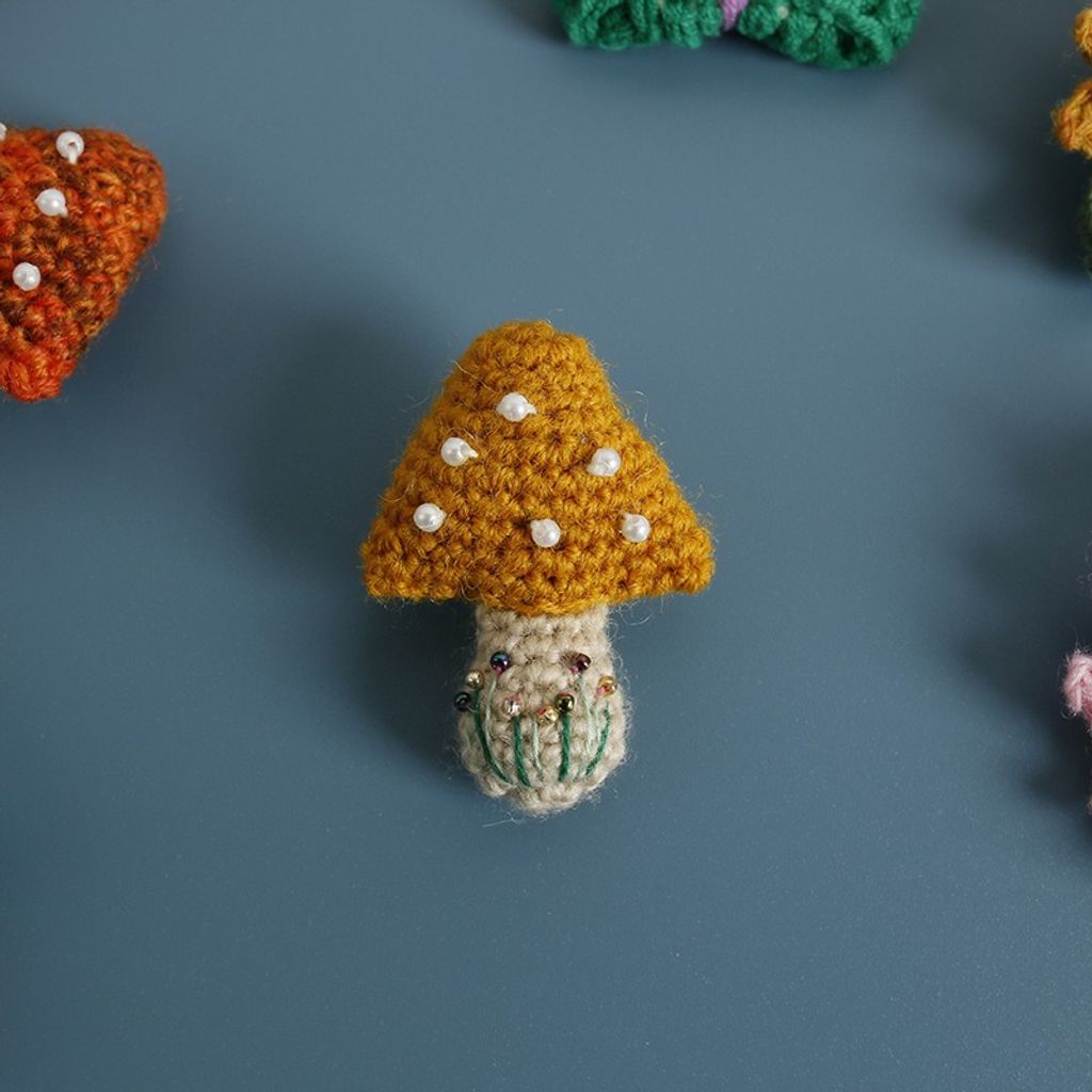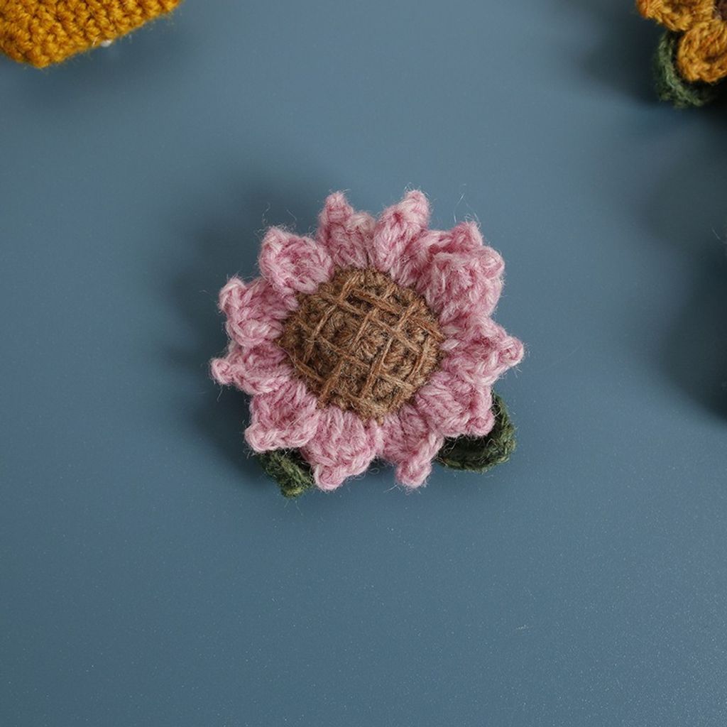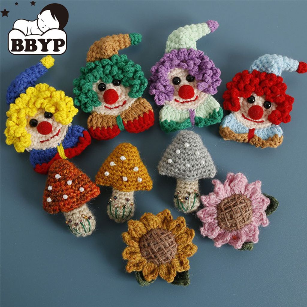 Handmade Brooch Crochet Mushroom Sunflower Leaf Hand-knitted Cotton Wool Breastpin Clothes Cap Sweater Decoration