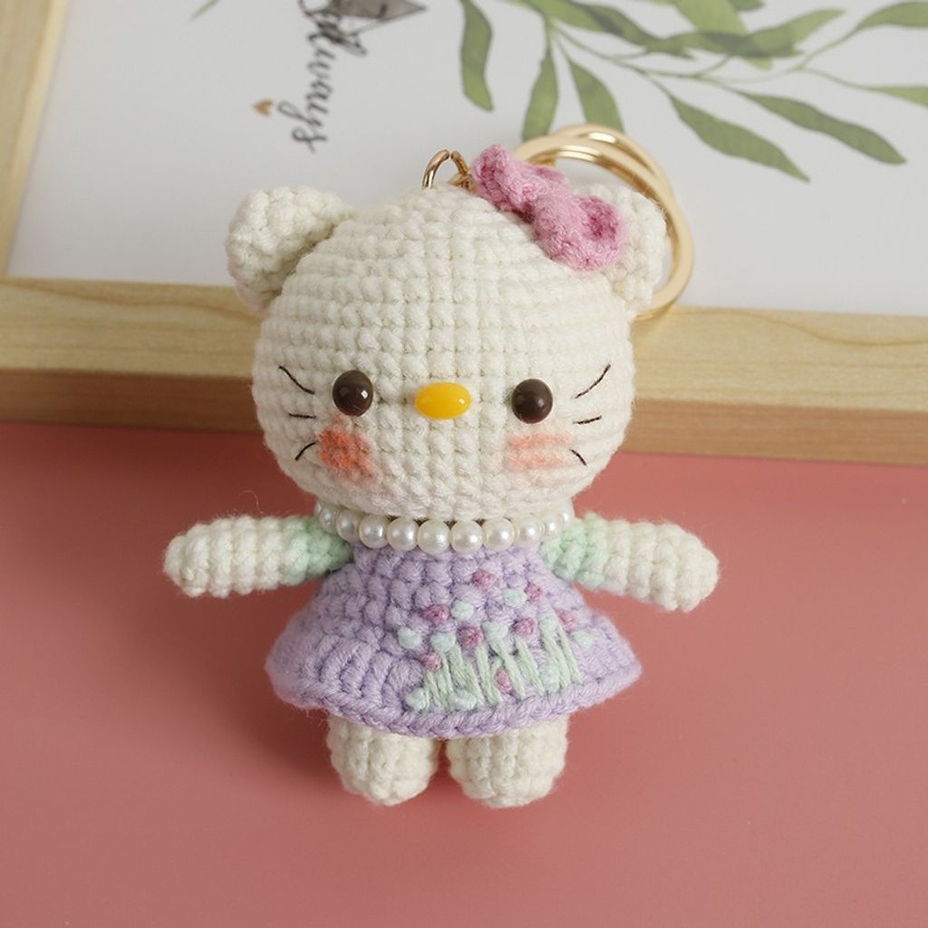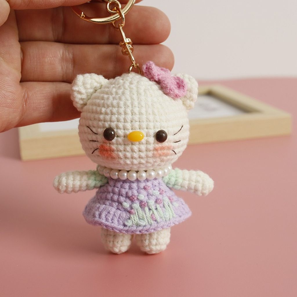 Handmade crochet anime Hello kitty character keychain perfect gift doll keyring pendant girl school bag keychain