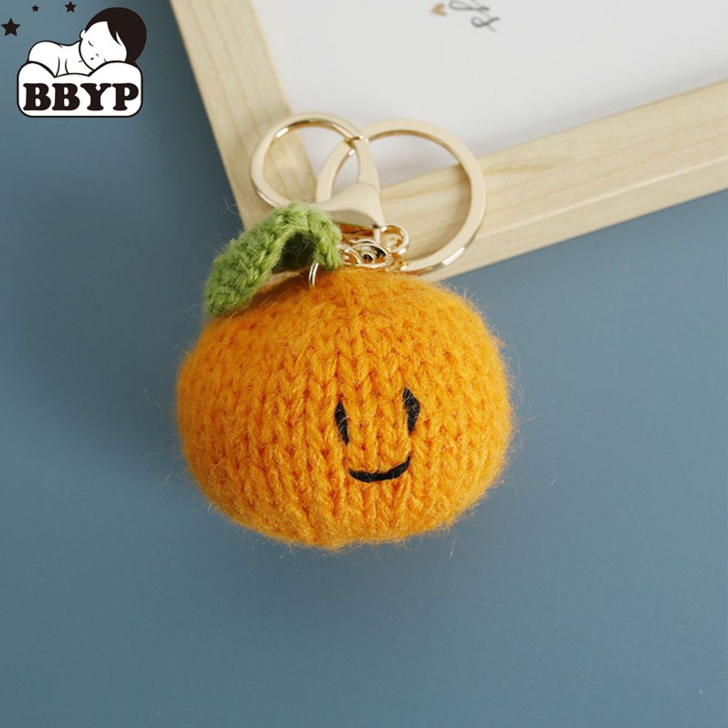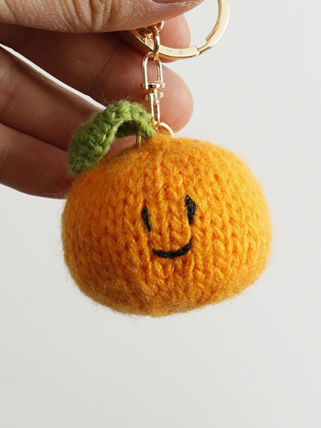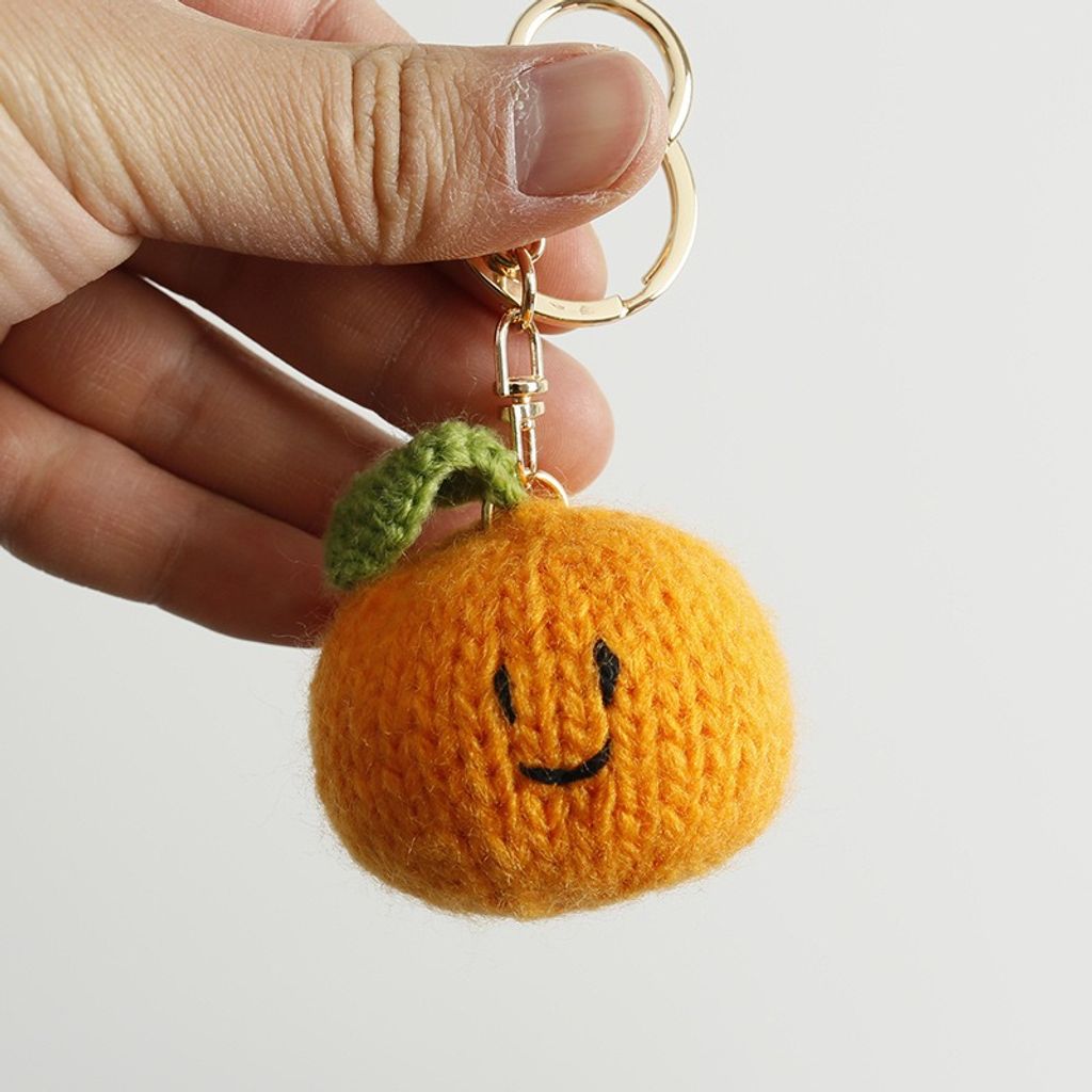 Handmade crochet orange keychain perfect gift handmade stick needle keyring pendant school bag keychain