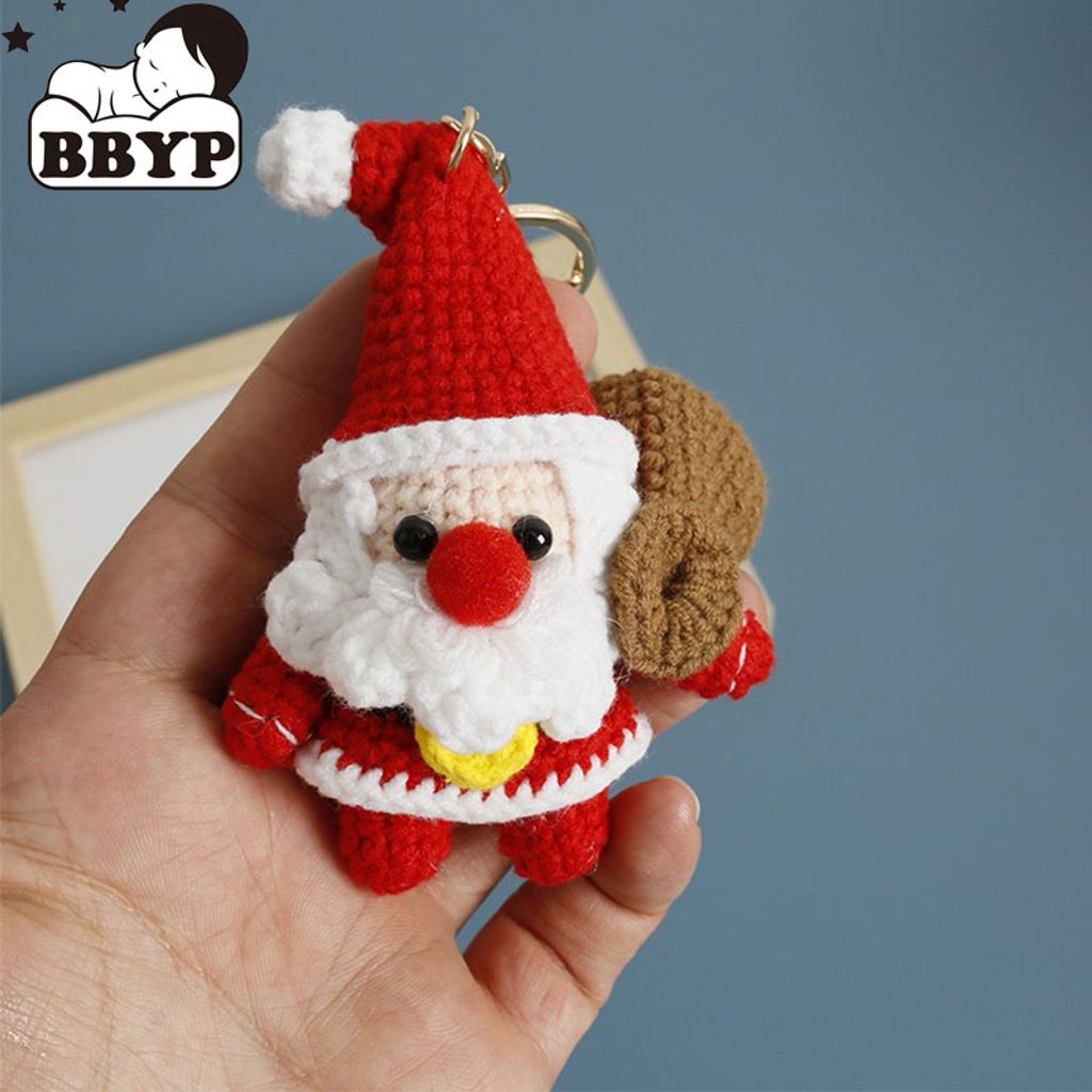 Handmade crochet santa keychain perfect gift handmade stick needle keychain pendant school bag keychain
