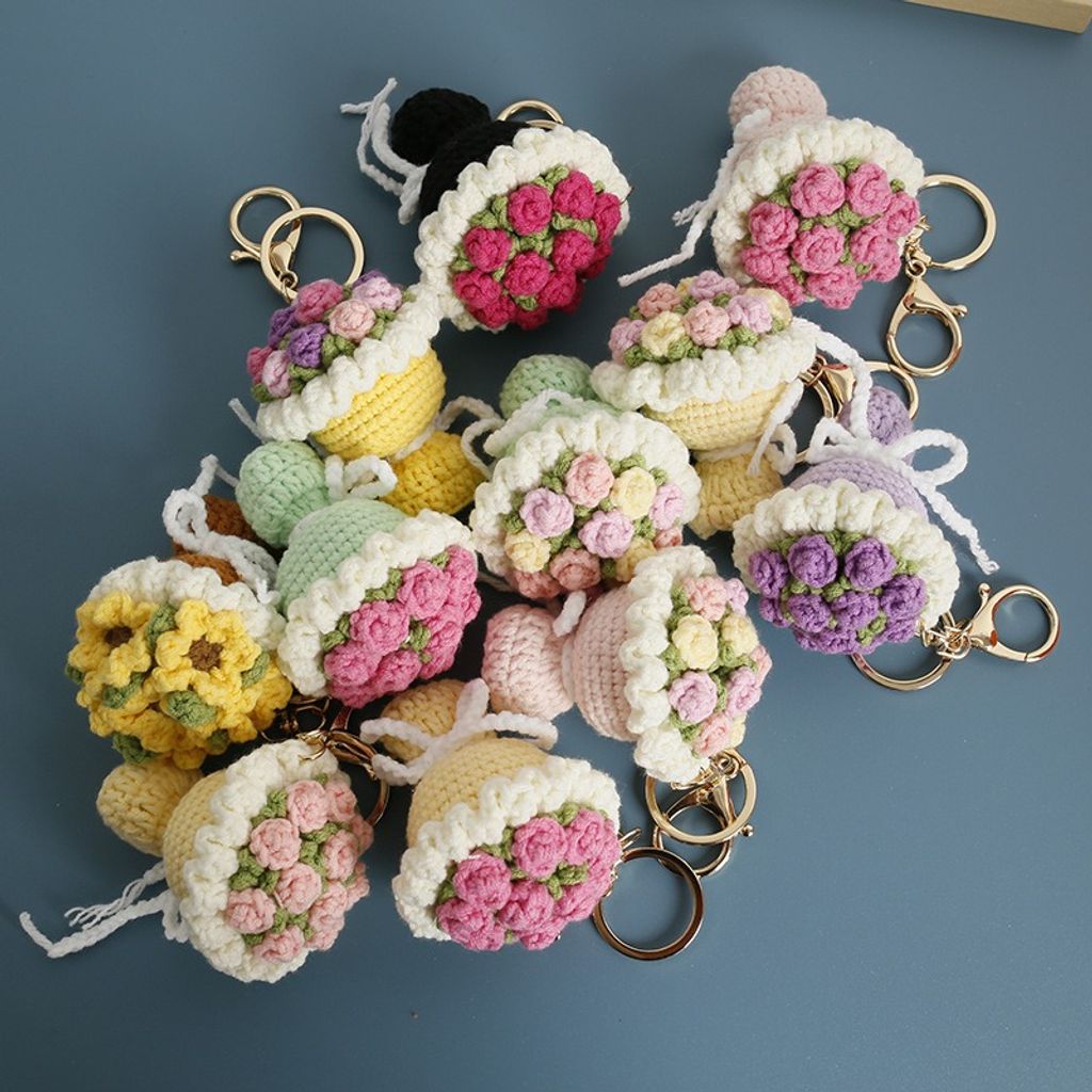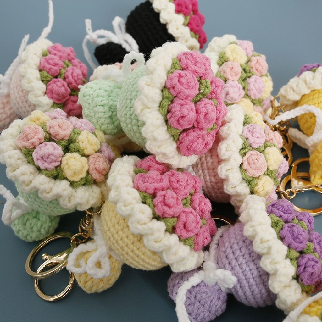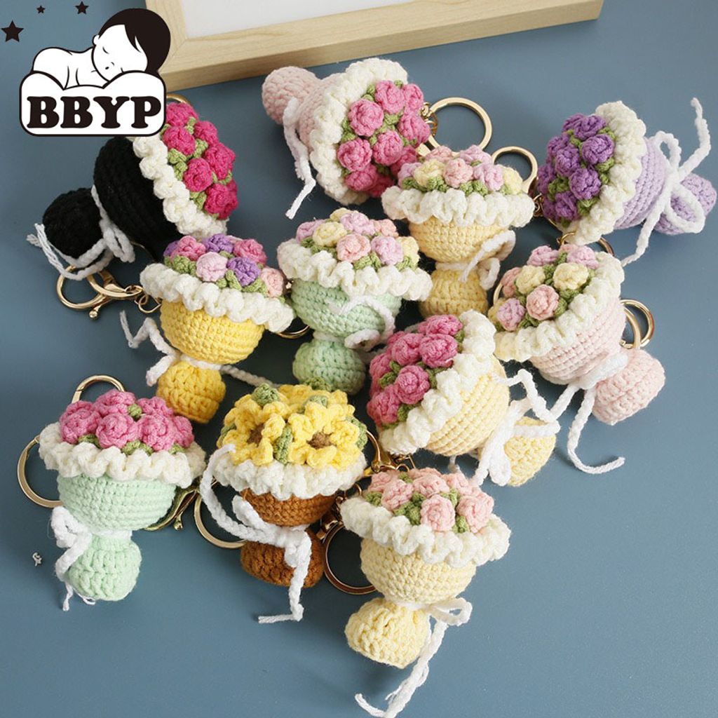 Mini Knitted Bouquet Creative Knitted Roses Sunflowers Wedding Gifts Hand Knitted Floral Arrangement Guest Bouquet Home Decoration Copy