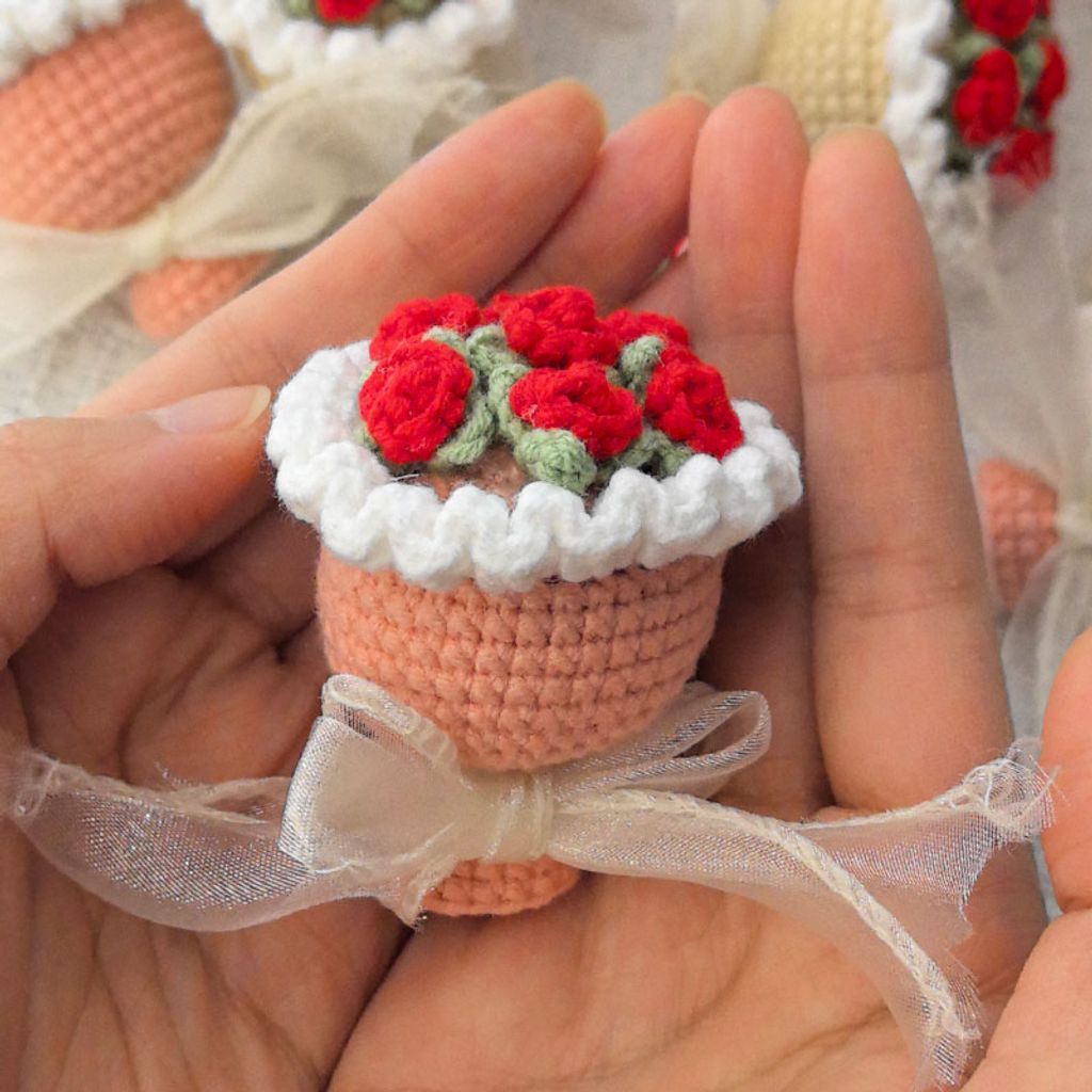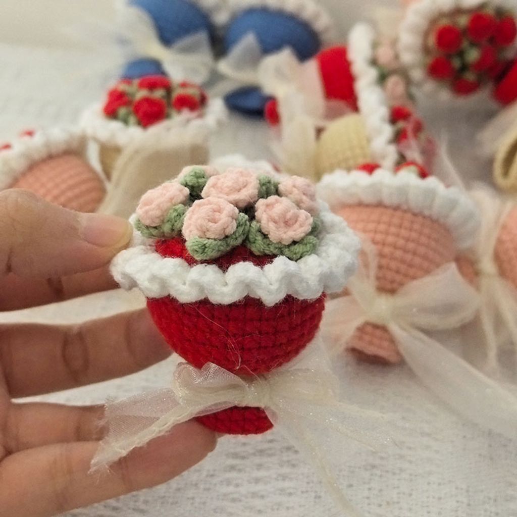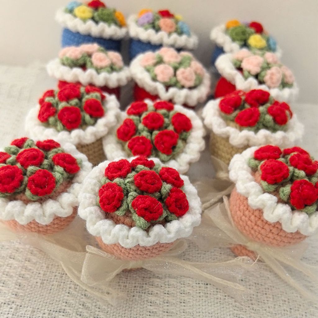 Mini Knit Bouquet Creative Knitted Rose Flower Wedding Gift Hand Woven Flowers For Guests Flowers Bouquets Home Decor