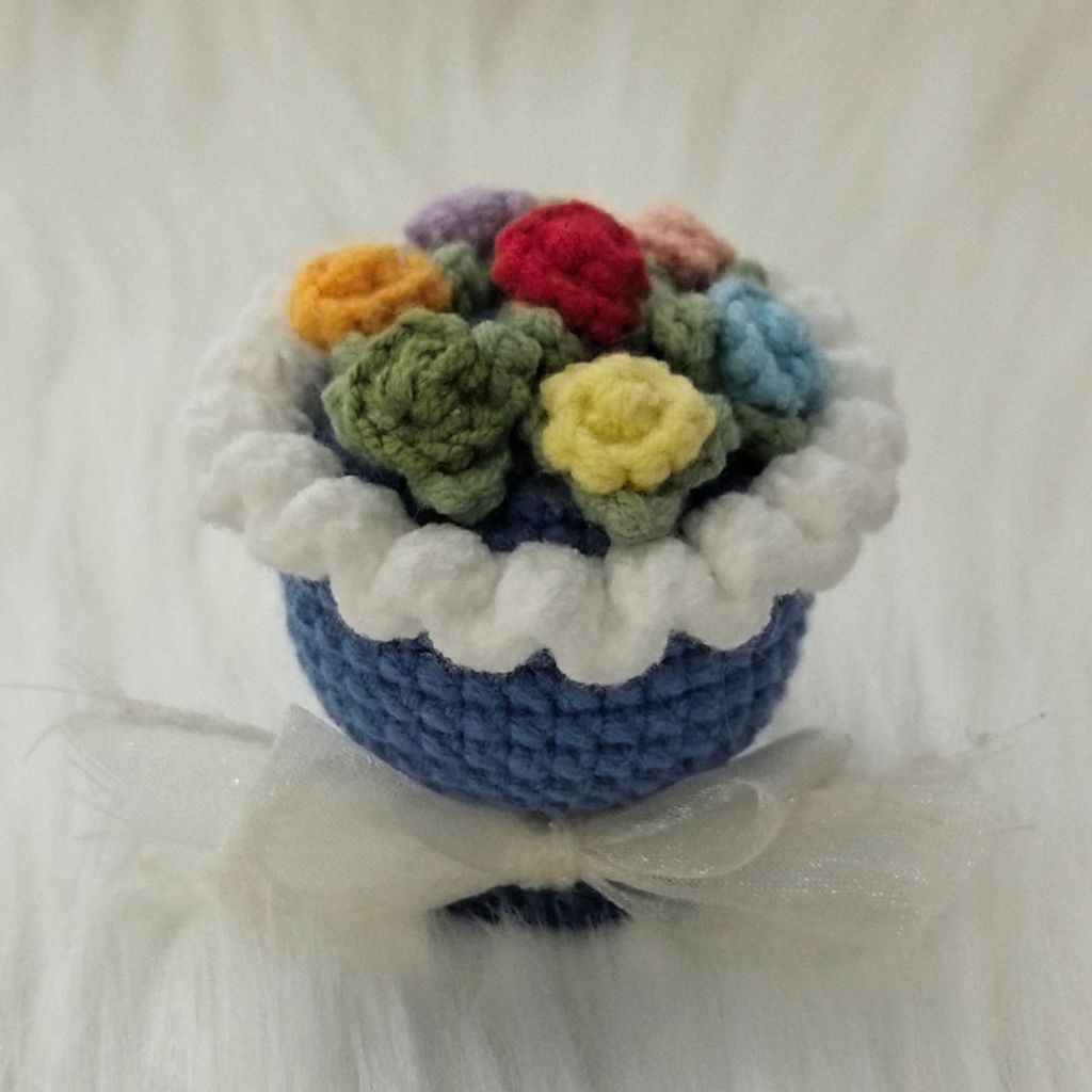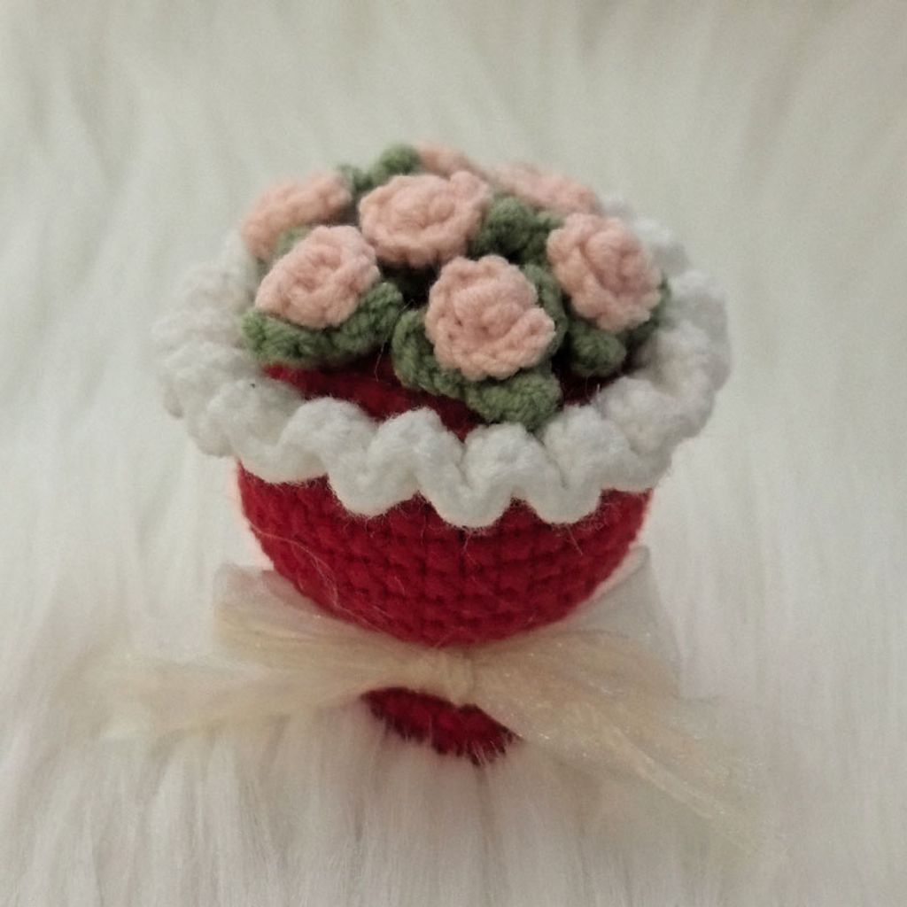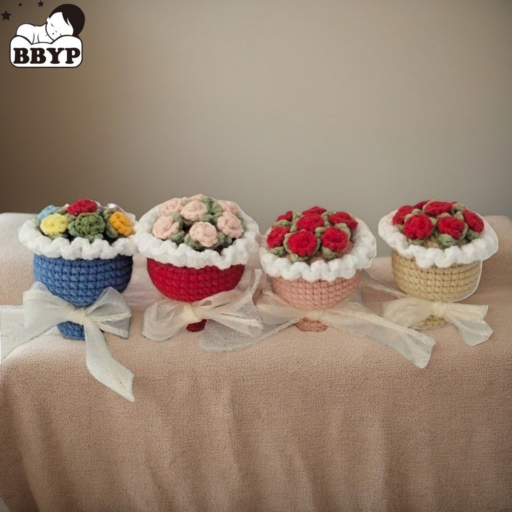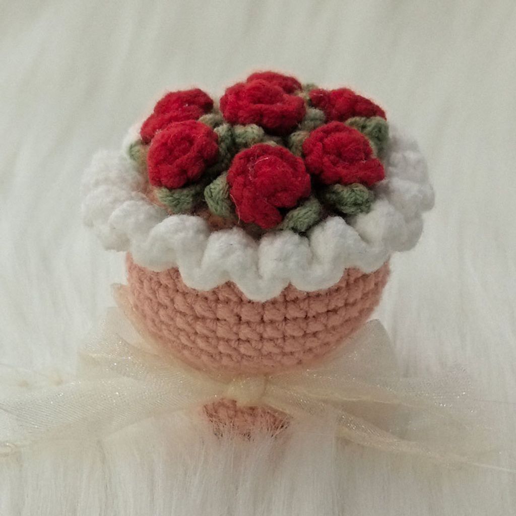 Mini Knit Bouquet Creative Knitted Rose Flower Wedding Gift Hand Woven Flowers For Guests Flowers Bouquets Home Decor